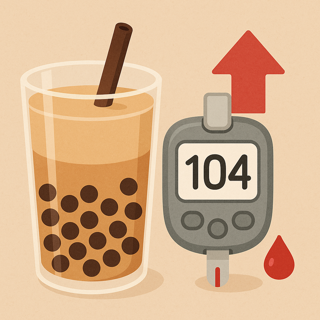 - 밀크티에 들어가는 **타피오카 펄(버블)**은 고당질 탄수화물로, GI 지수가 높고 복합당보다는 단당에 가까운 특성이 있어 혈당을 빠르게 올릴 수 있습니다.
